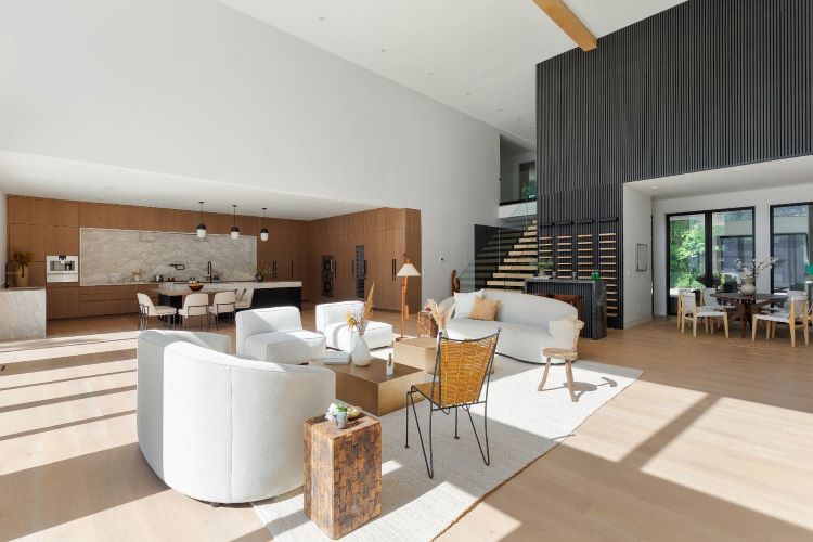 The modern kitchen has undergone a remarkable transformation over the past two decades. Once a closed, utilitarian room tucked away from the rest of the house, today’s kitchen has become a central living space—designed, furnished, and experienced as an integral part of the home. This Urban Homes project in East Hampton captures that evolution perfectly, blending architecture, furniture, and function into a warm, contemporary environment that feels both elevated and deeply livable. In older homes, kitchens were often separated by walls and doors, designed purely for efficiency and privacy. Cooking happened out of sight, and kitchen design rarely received the same level of attention as living or dining spaces. Today, that approach has shifted entirely. Modern kitchen design embraces openness, connection, and visual continuity, allowing the kitchen to flow seamlessly into surrounding living areas.