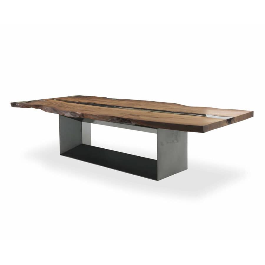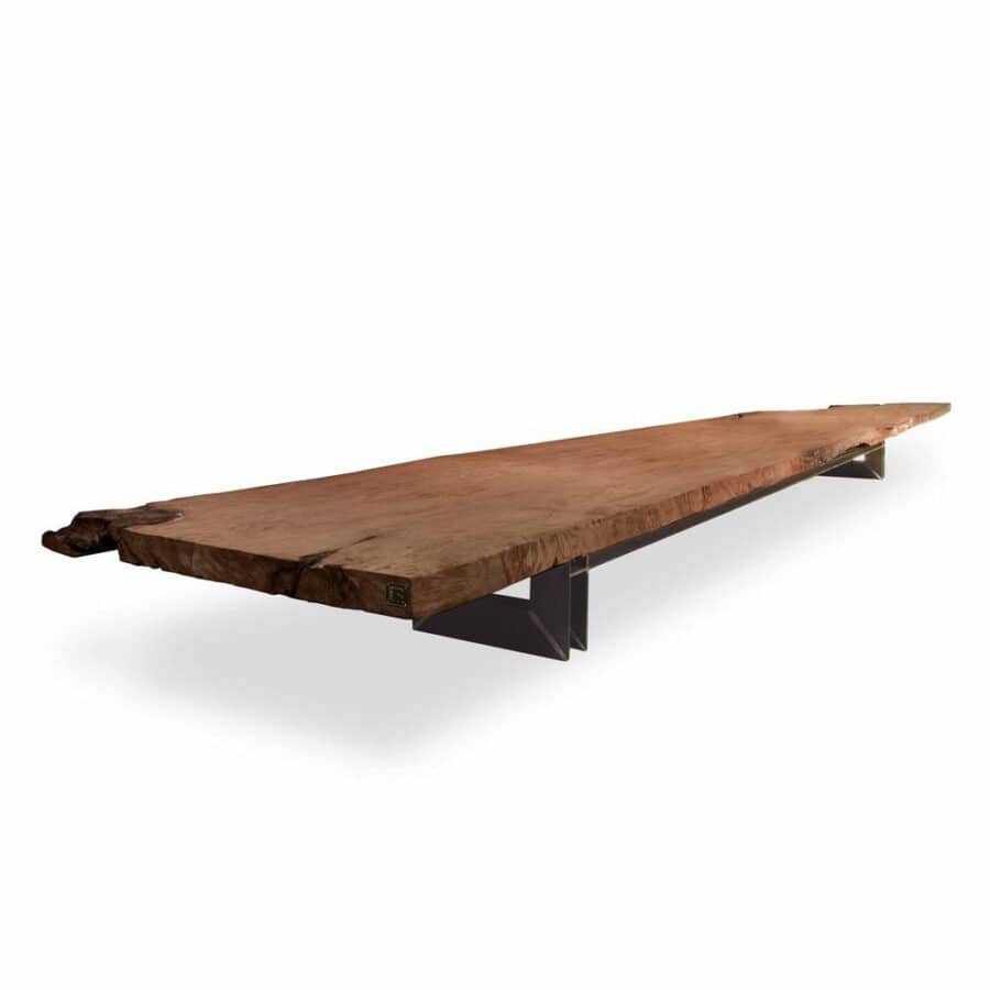 Each design highlights the natural imperfections of wood, making knots, grain patterns, and cracks part of the furniture’s unique look.
